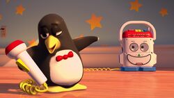 He performed the singing voice of Wheezy. Wheezy often known as Wheezy the Penguin is a rubber squeeze toy penguin with a red bow tie. He is voiced by the late Joe.